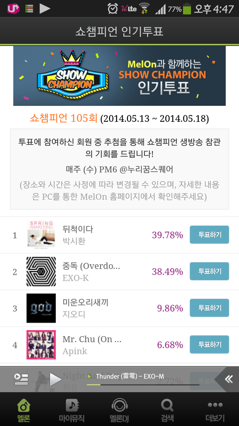 분명방금 엑소케이가 39.87? 이정도였는데 갑자기 바꼈다고 빨리투표해