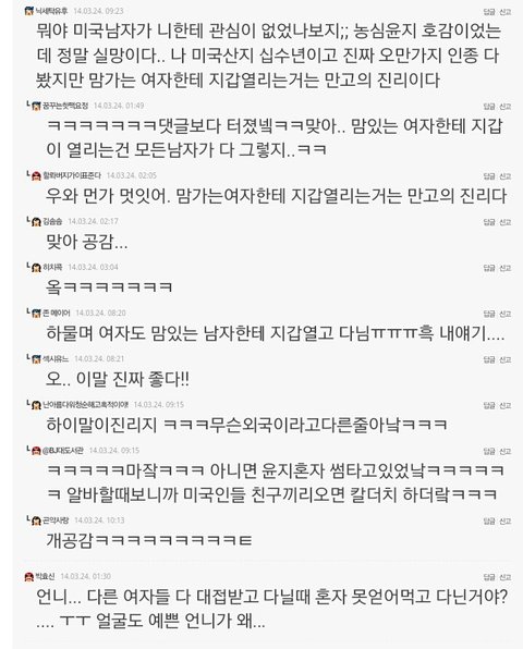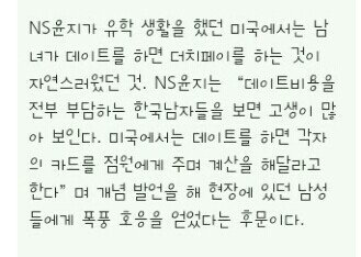 NS윤지의 일화에 대한 흔한 한국녀들의 반응