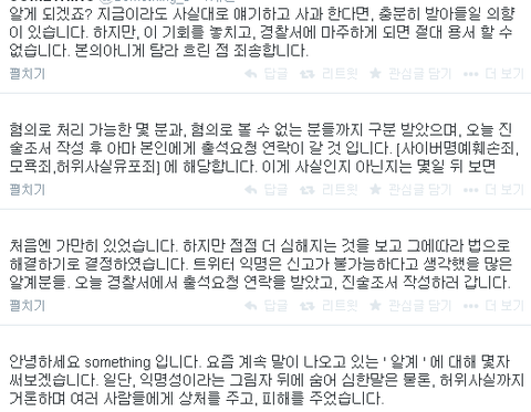 홈마가 알계 사이버수사대에 신고함 ㅋㅋㅋㅋㅋㅋㅋ 어휴 속시원하다 저 미친알계 저번에도 모금하는 홈마한테 이지럴저지럴 다하더만 경찰서에서 1:1 면담하고 이바닥에서 사라져줬으면 제발지금 본계정 까고 사과트윗 잼임 ㅋㅋㅋㅋ