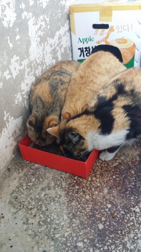 불편하게 끼어서 먹고있냥 ㅋㅋ