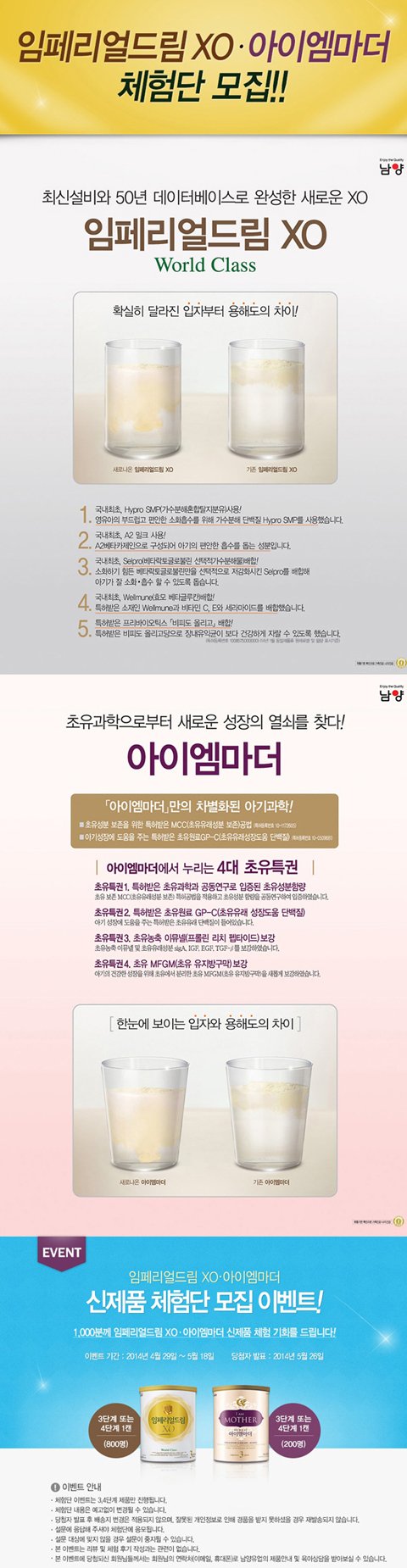 4월 29일부터 5월 18일까지 총 1,000분에게남양분유 신제품을 체험할 수 있는 기회가 주어집니다.