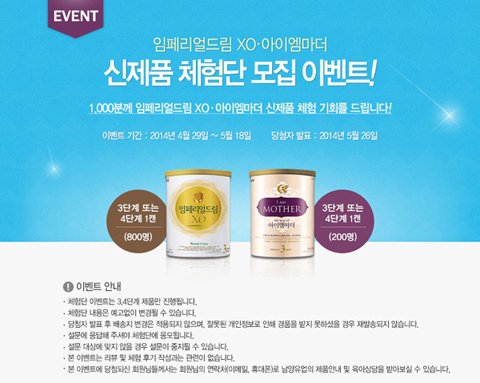 남양유업 임페리얼드림XO와 아이엠마더 체험단을 모집한대요!!남양분유 신제품을 공짜로 받을 수 있는 기회를 놓쳐서는 안 되겠죠?!