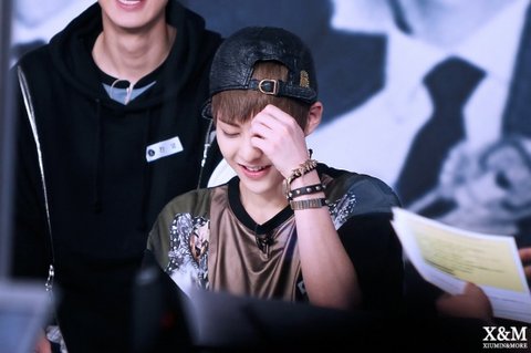나이 거꾸로먹는 시우민... 웃을때는 더 아기같아...
