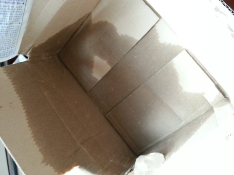현관문 뒤에 웬 비에 젖은 상자하나가..
