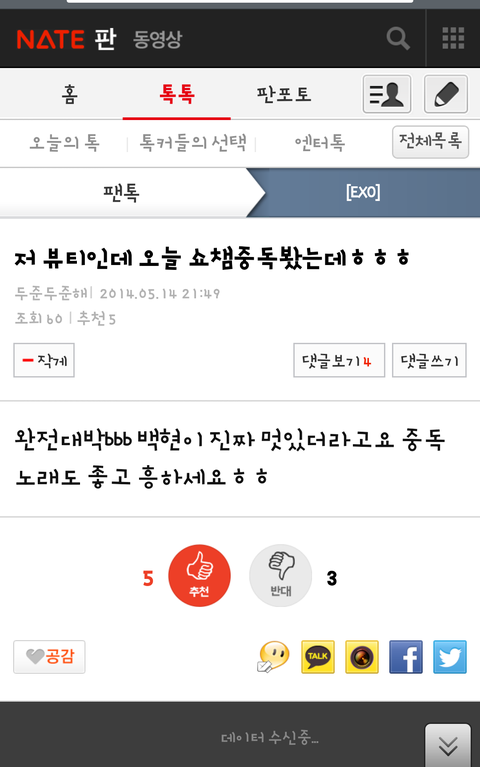 와 딴팬이 우리톡까지와서 애들칭찬해주는데 대놓고욕질이네 ㅋㅋㅋㅋㅋ속고만살앗나봐