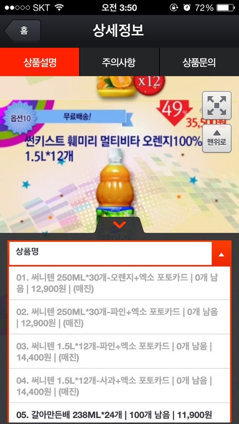 역시 전부 품절ㅠㅠ 혹시 물량추가는 안될까 싶어 상품문의로 들어가봤음