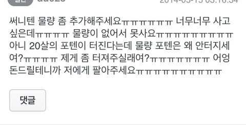 그건 그렇고 물량 추가해주세요!!!!