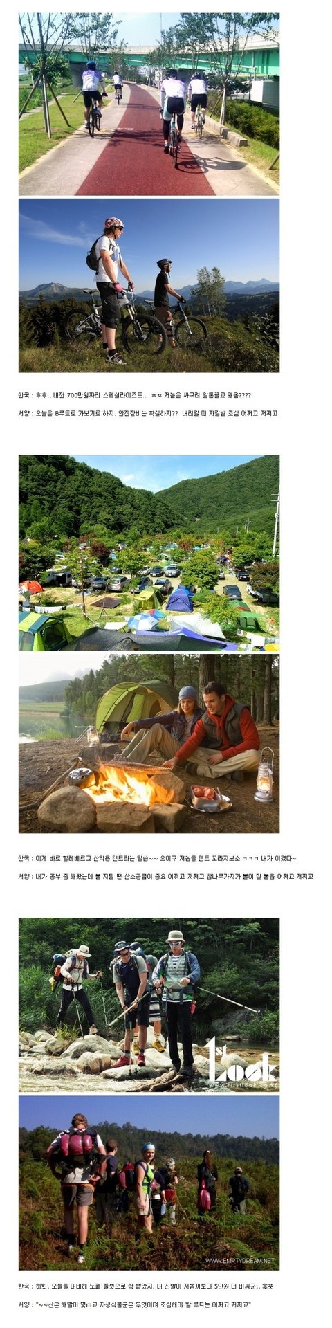 실제로 어렸을때부터 해외에서 살았기 때문에 가족끼리 여행을 많이 다녔음. 주로 캠핑장을 많이 갔는데 텐트 크기와 종류에 위축되고 비교하는건 우리나라나 해외나 똑같음. 저렇게 불을 직접 지피지도 않음. 우리나라 사람들이 남을 의식하는건 있는것 같은데 저렇게 일반화 하는건 아닌것같다
