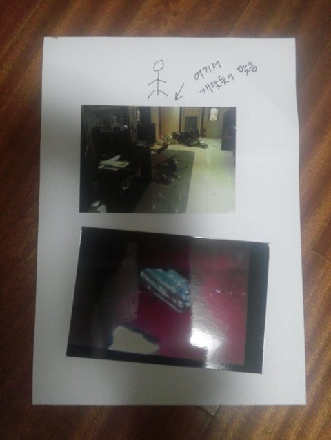 (위: 제가 맞은 장소, 아래: 교수가 맥주병을 깬 사진)