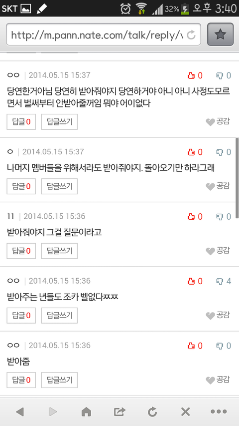크리스 돌아오면 어쩔거냐는 글에 댓글들