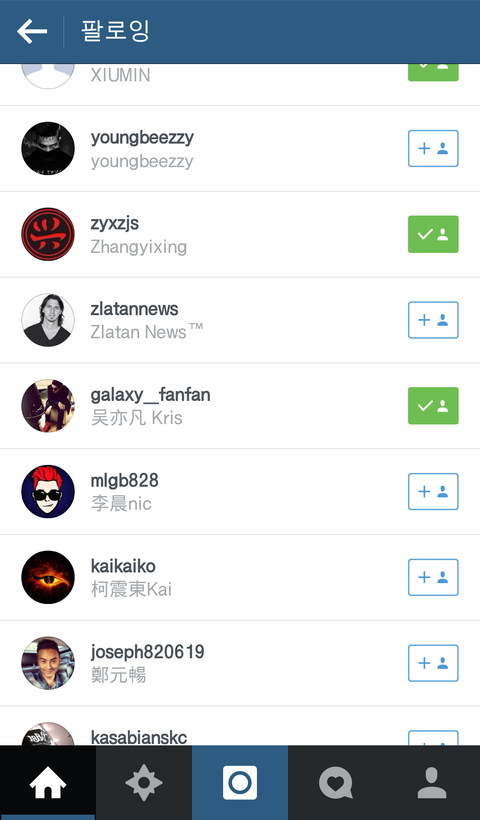 백현 루한 빼고 맞팔안되있음