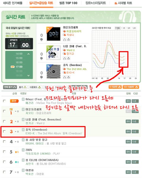 멜론 5시 실시간 그래프(3위)