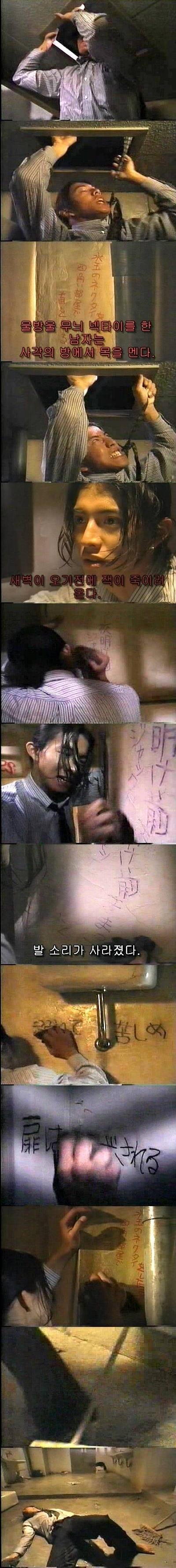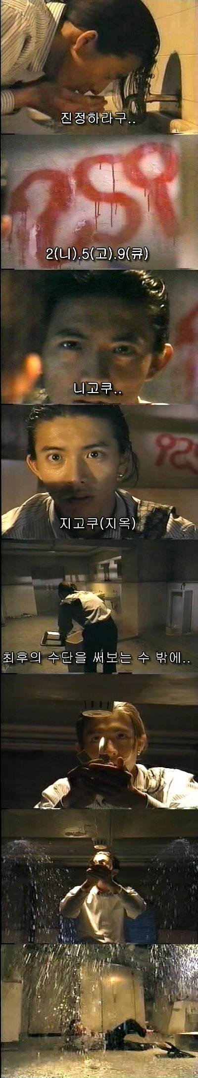 살해된 여자얼굴형상에 이은 지옥이란 낙서에 최후의 수단을 쓰는 남주.