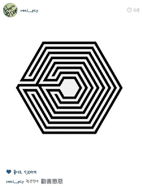 찬열이 인스타에 올린 엑소 대표하는 표시와 함께 권선징악이라는 말을남기