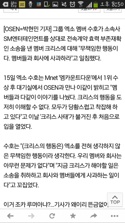 수호 인터뷰떴다 이제 크리스감싸기 그만해라