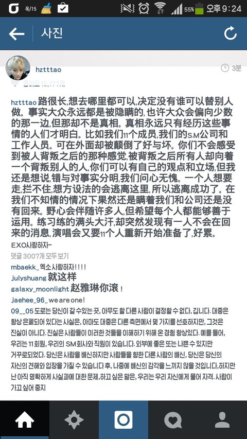 야 씨........타오야.....ㅠㅠ 타오 화난거 같은데...