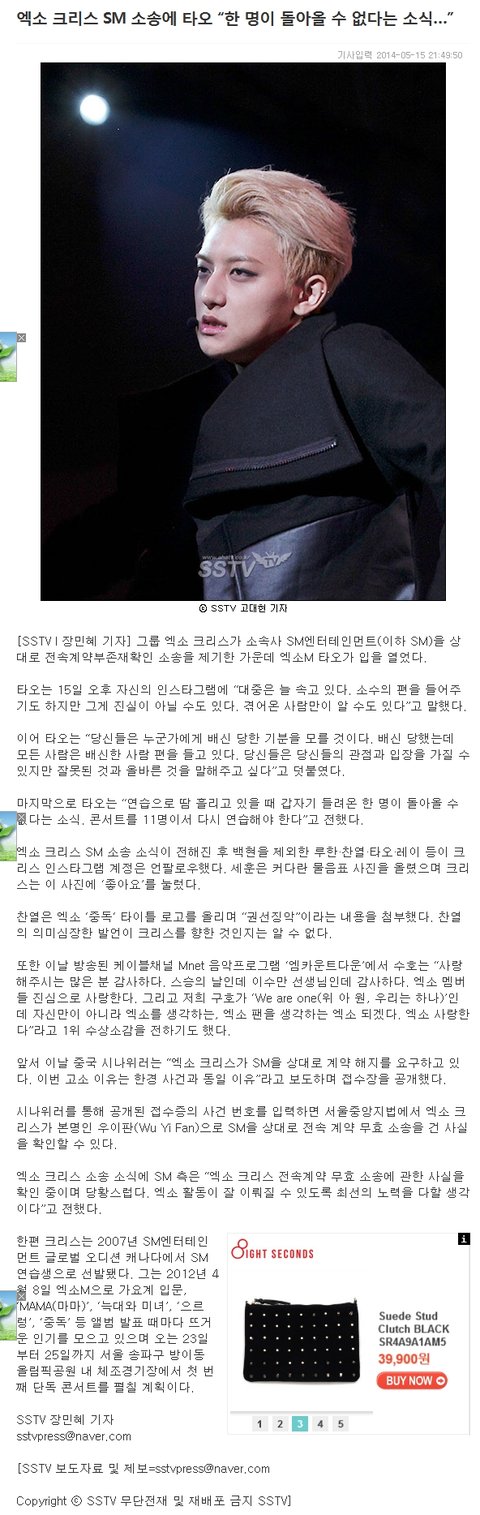 타오 웨이보도 기사 떳다.ㅇㅇ