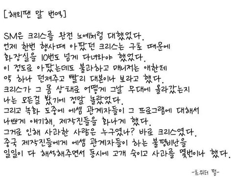 사실 나도 첨본건데 크리스가 무조건 잘햇다는건 아니지만 너무 몰고가지마