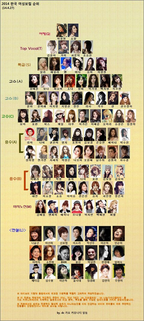 원래 태연언니가 평소 라이브도 대단히 안정감있게 잘하고 무대매너도 좋구 그래서 개인적으론 아이돌중엔 최고! 가수들중엔 중상위권! 이렇게 생각했는데.. 오늘 페북하다가 이런 순위표보고 좀 충격에 멍~~...