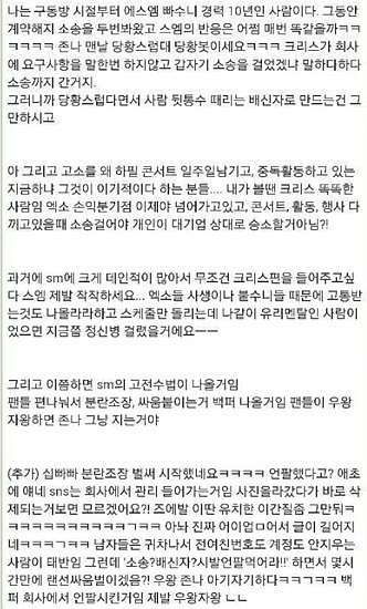이걸 안 소속사는 팬들을 분열시켜 논란의 중심이 회사가 아닌 개인에게 돌려서 이 일을 해결하려는듯 보이구요.