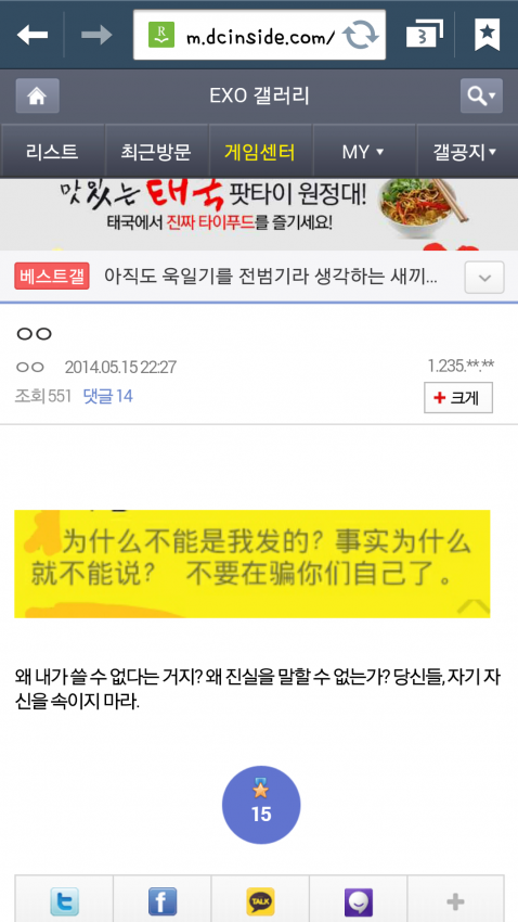 당신들 자기자신을 속이지말래..타오가 쓴거맞다 엑소못믿냐 ㅄ들아 ?