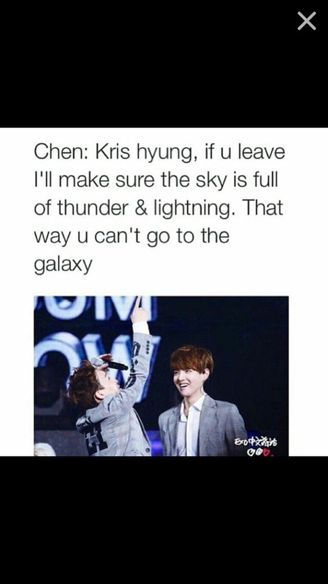 종대: “크리스형, 만약에 형이 떠난다면 제가 하늘에 번개로 꽉차게 만들거에요. 그렇게해야지 형이 갤럭시로 갈수없으니까.”