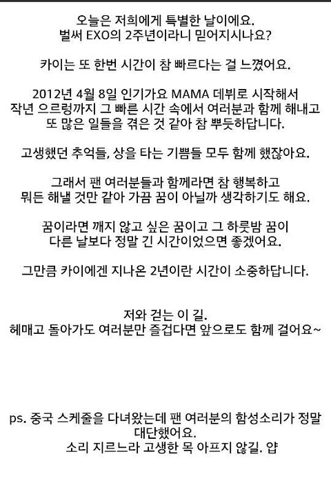 카이가 엑소팬들에게 하는 말