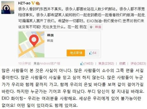 니네가 타오못믿어서 타오가 웨이보에 자기위치인증해중ㅇ