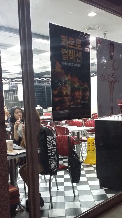지연은 버거킹에 걸린 자기 포스터 무심한척 하면서 눈꼬리를 올려 살금살금 쳐다보다 내 새 폰카에 빡. 끝