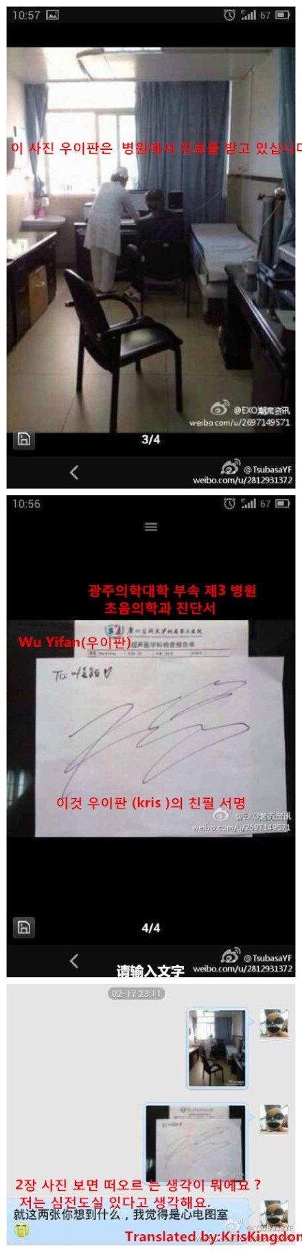 우연히 웨이보에서 이소식을 보고 올려서 비서들에게 보여 주구요.