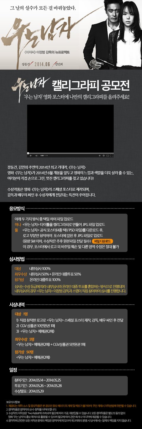 영화 우는 남자의 스페셜 포스터에 쓰일 캘리그라피를 공모하네요.