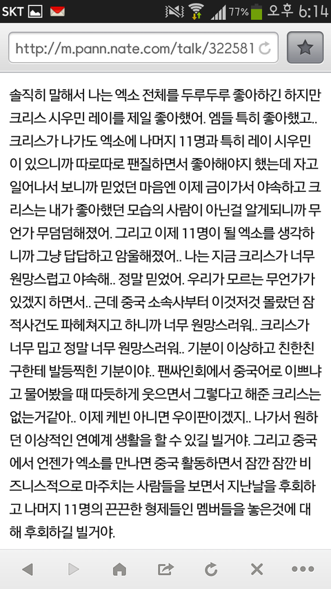 중국에서 혼자서 일하면서 11명의 형제같은 멤버들을 놓은걸 후회하길.빈다는거..