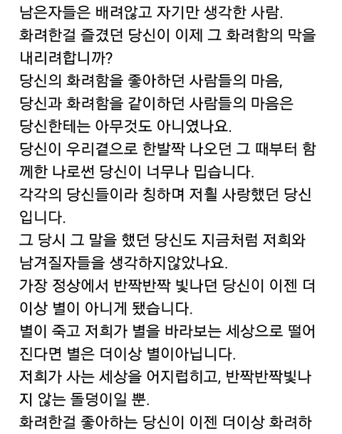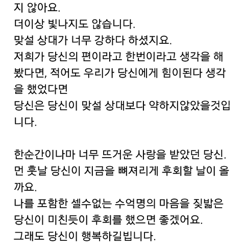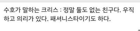 여기서 나머지멤버들 중국인이라고 욕하지 않았으면 . .크리스를 욕하셨으면좋겠네요 루한, 레이 타오은 중국인멤버인데 걔들은 뭐가됨 타오는 인그타그램에 엑소케이사랑한다고 동영상도 올리고 중국에서 인터뷰할때 케이보고싶다고 우는앤데; 이번에 타오 인스타에 올린글보면 진짜 크리스한테 배신감 많이 느끼는것같고 레이도 혈우병까지 있으면서 몇년연습생시절을 버틴앤데; 같은중국멤버가 갑자기그러니 진짜 힘들겠다 지금 크리스 심장안좋다고 동정심유발ㅋㅋ? 하는것같던데 레이는 나머지멤버들은 안힘드냐. . 사녹후기보니까 장난아니던데. , 크리스도한국활동하면서힘든거있었겠지만 시우민 첸도 한국인이면서 데뷔때부터 쭉 중국활동하는게 엄청힘들어보였는데 크리스보다훨씬. .리더라는 사람이 그러니 나머지 11명애들은 얼마나 혼란스러울까 특히 수호랑 중국멤버들. . 수호는 진짜 쇼타임만봐도 크리스 리더라고 엄청 챙기던데 크리스 진짜 강아지. ,