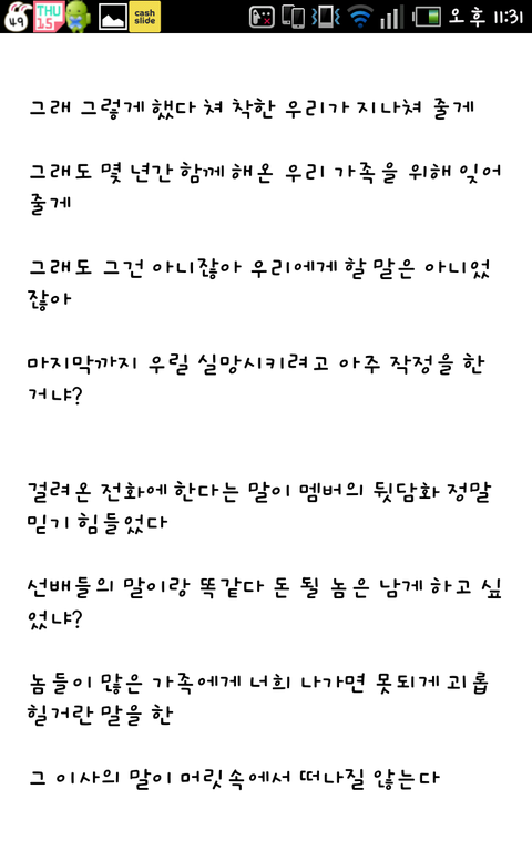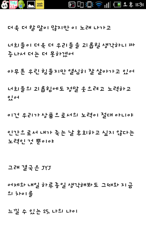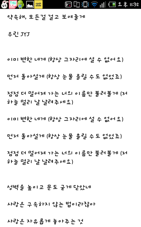 뒤에조금더가사가잇지만용량땜에;;다올리지못했습니다ㅠ스엠은지금도jyj의방송출연을강력하게막고있습니다.