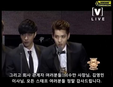 “회사 관계자 여러분들. 이수만 사장님, 김영민 이사님, 모든 스태프 여러분들 정말 감사드립니다”
