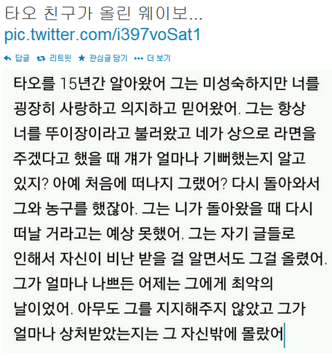 타오 친구가 올린 웨이보래