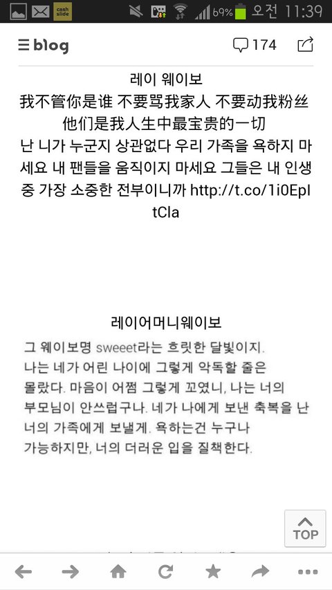 레이도 이 사실을 알고 우리 가족을 욕하지마세요,내 팬들을 움직이지마세요라고 글을 올림.