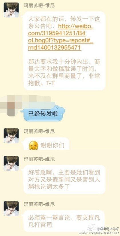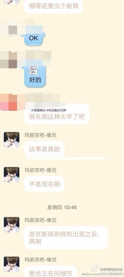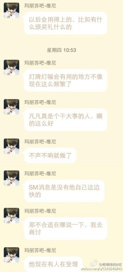 태그 이미 지금 생각해둔거 있고 나중에 웨이보에 같이 하자 예를들어, 우이판 집에 온 걸 환영해. 이런식으로. 조금 이따가 기사 나와 준비해 바로 언론을 크리스편으로 만들어야 해 판판은 진짜 대단한 사람이야. 큰 일을 하는 사람이다 역시.. 잘 숨겼어, 아무도 몰라. 다 모르는데 혼자 다 했어 SM쪽의 소식도 판판보다 늦어