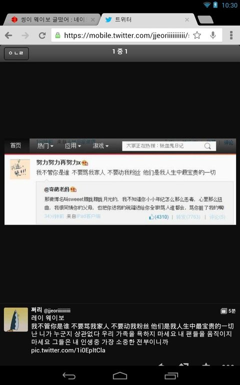 지금 상황이 어떤 악플러가 레이 어머님 웨이보에 악플을 달았는데 레이가 인용글 남긴거야.
