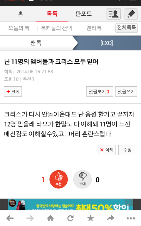 내가 저런글을 왜썼을까 불과 몇일전이었는뎈ㅋㅋㅋㅋㅋㅋ 나 병신이었나봐