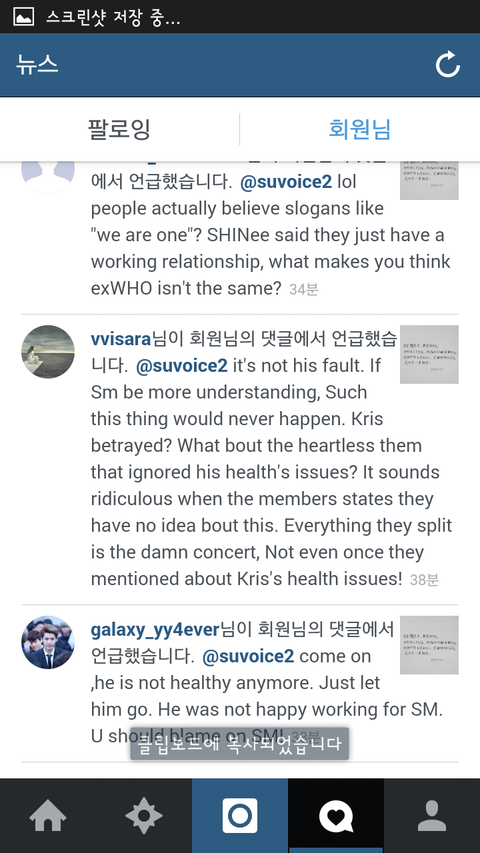 내가 아까 크리스는 탈퇴하기 위해 소송걸었다고 영어로 인스타 글 썼더니 이런식으로 남겼더라 외퀴년들이