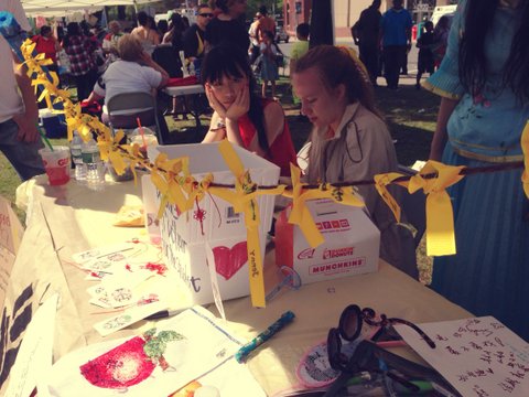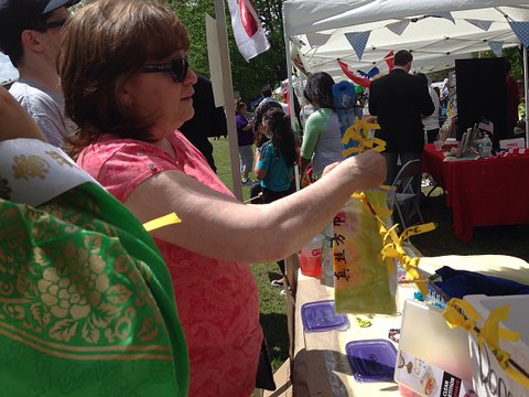 시민들께서 기부한후 자기이름이 새겨진 저희가 준비한 노랑리본을 달아주셨어요