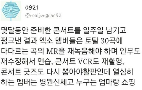 김종인 몸 상태 최악인 거 알고있지? 살인적인 스케줄로 다른 멤버도 많이 지친 상태. 아직도 쉴드치는 사람있으면 봐라