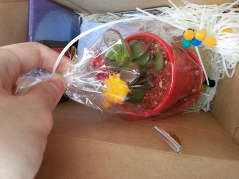 아이유가 직접 그 선인장을 들고 찍은 폴라로이드 사진에는