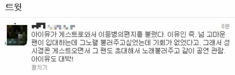 그 팬을 자신이 게스트로 출연하기로 되있던 성시경 콘서트에 강제 소환