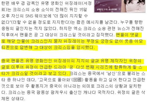 중국사이트에서 놀면서 나머지 멤버들이 중국 대중들에게 욕먹고 있다는 사실을 모를리가 없는데.