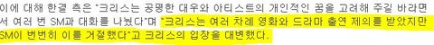 연기를 하고 싶어했던 크리스를 sm이 막았다는 것.