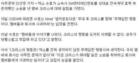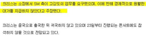 <크리스의 sm소송 이유>