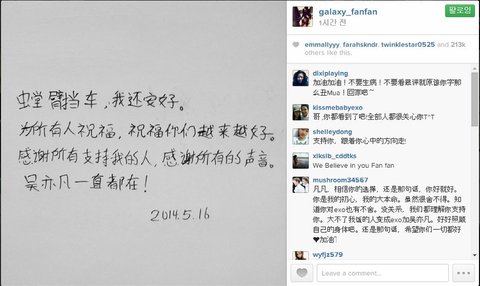 이 글이 올라온 후, 엑소내 sns를 하는 멤버들중 유일하게 크리스를 언팔하지 않았던 백현이 크리스를 언팔함.