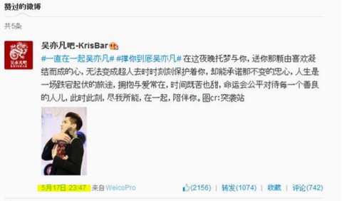 <타오 웨이보 글>